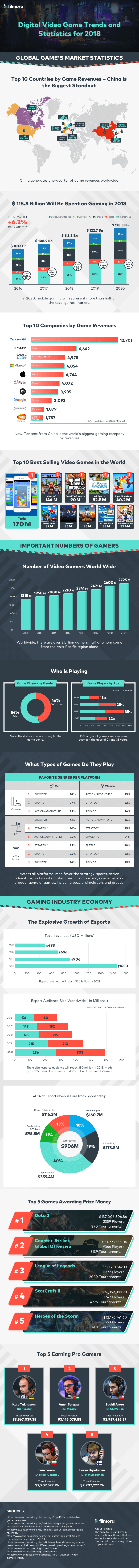 Want to know more details and facts and statistics about video game trends? Just scroll down to check this infographic designed by Filmora team, which also provides a video editor named Filmora and a screen recorder named Filmora Scrn.